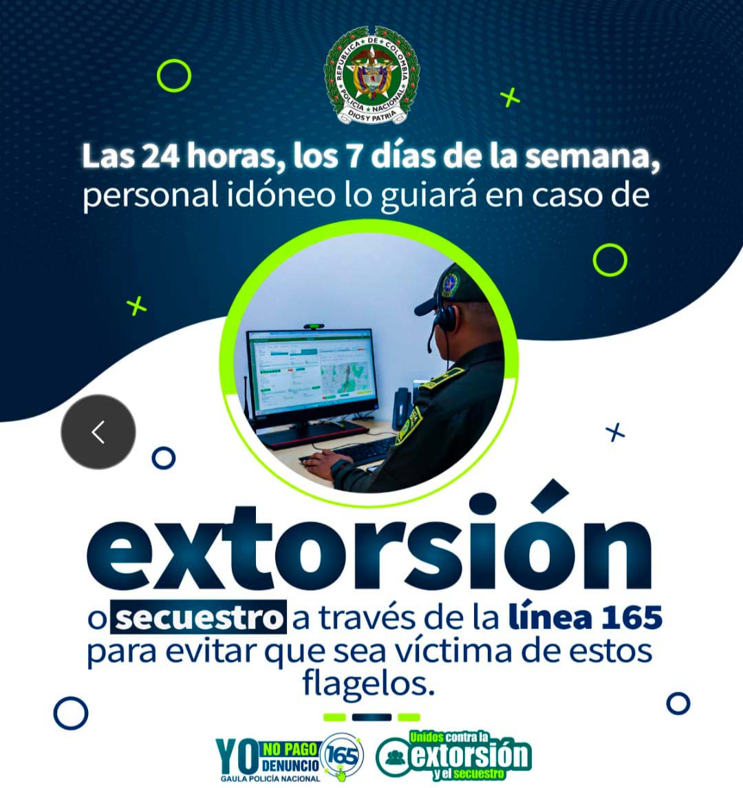 El grupo GAULA Urabá, nos presenta las siguientes piezas gráficas comunicacionales en la modalidad de “Falso Servicio” donde nos brinda unas importantes recomendaciones a todos los locales comerciales del centro comercial plaza del rio de la Subregión de Urabá, de igual forma pone a disposición el portafolio de la Dirección Antisecuestro y Antiextorsión, en materia de investigación criminal y preventiva, llamando a la línea de atención 165 y al número telefónico 3178942113 y 3178965599.
